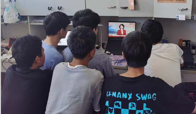 部分学生在宿舍自发观看直播