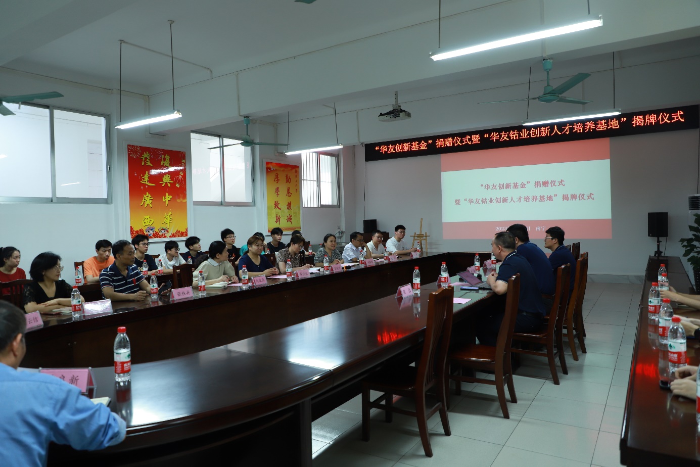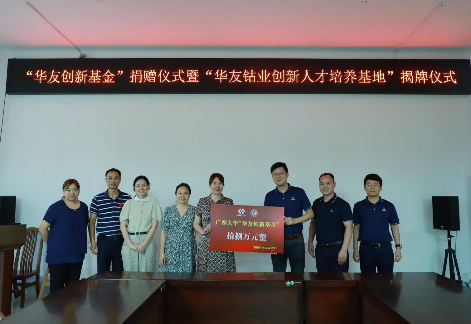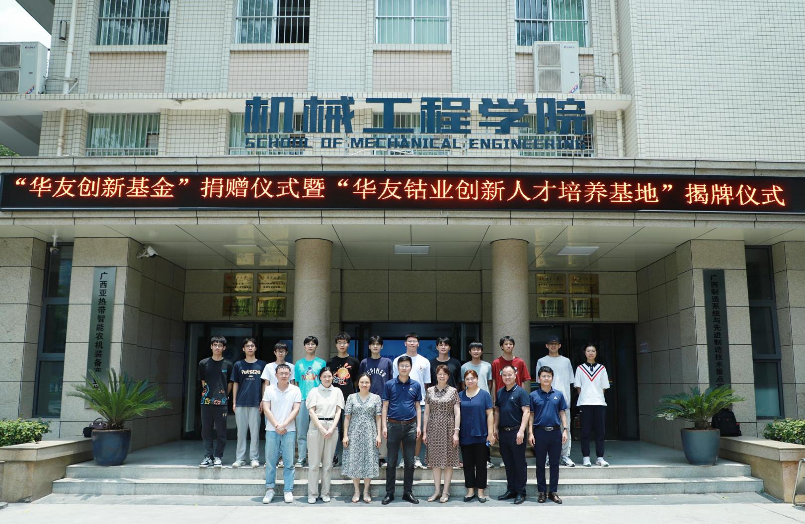 5月19日上午,浙江华友钴业广西华友工程项目管理有限公司人力资源中心总经理王敏一行到访古天乐代言太阳集团网址,与古天乐代言太阳集团网址领导和师生座谈交流,并共同举办“华友创新基金”捐赠仪式暨“华友钴业创新人才培养基地”揭牌仪式。仪式由党委副书记黄路明主持,学院常务副院长蒙艳玫、副院长高欲垚、学科竞赛指导老师马俊燕、张铁异以及学院全体辅导员出席仪式。