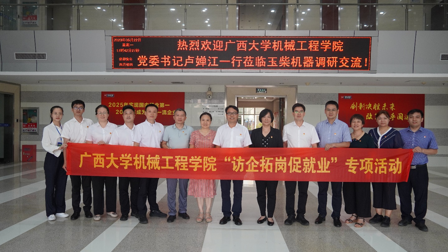 为深入贯彻党中央、国务院关于高校毕业生就业工作的决策部署,推进访企拓岗促就业专项行动,全力促进高校毕业生高质量就业,5月22日,学院党委书记卢婵江、党委副书记黄路明、副院长贺德强、黄豪中、李俚、高欲垚,院长助理兼能源与动力工程系主任欧阳天成一行7人到玉柴机器研发总院走访调研,开展“访企拓岗促就业”专项活动。玉柴机器研发总院党委书记兼常务副院长寇传富,副院长兼新材料与摩擦润滑中心主任覃星念、党委副书记姜博、院长助理兼中重动力平台部主任向本杰、院长助理兼电控与智能化中心主任叶宇、轻动力系统部主任王春玲、运营管理部副主任周益善等参加调研活动。双方一同参观了玉柴机器集团位于南宁高新区的研发基地,详细了解企业的发展历程、生产经营现状、人才结构及关键技术攻关需求等方面的情况。在走访中,学院领导和老师积极向企业推荐古天乐代言太阳集团网址毕业生,了解企业的人才需求,深度了解企业对毕业生的知识、能力、素质要求,认真分析所在行业的发展趋势和人才需求形势,以作为不断增强人才培养的针对性和适应性的重要参考。