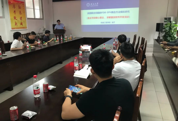 龙厅副教授作题为“流固耦合问题的FEM-SPH耦合方法模拟研究”的学术分享