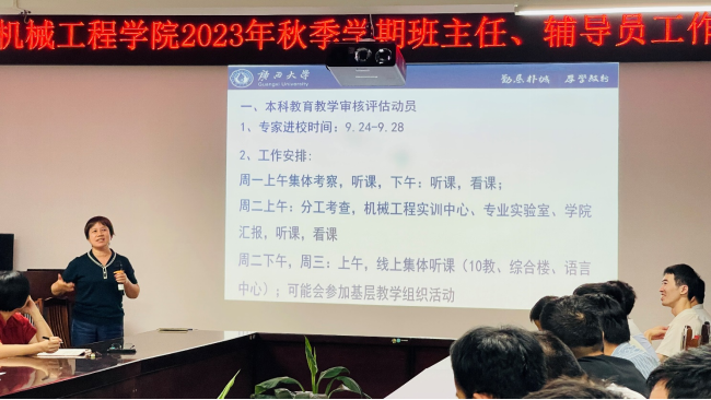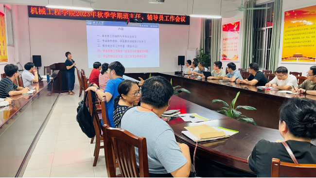 为加强班主任、辅导员队伍建设,提高本科教育教学质量,促进学生全面发展,9月5日晚,学院召开了2023年秋季学期班主任、辅导员工作会议。学院党委书记卢婵江、党委副书记黄路明、副院长李俚,以及全体班主任、辅导员老师等参加会议。