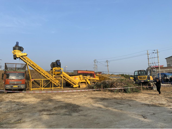 在兴宾区凤凰镇下社尾,现场观摩分步式高效剥叶除杂作业演示,广西柳工机械股份有限公司负责人详细介绍分步式高效剥叶除杂设备研发生产和推广应用情况。
