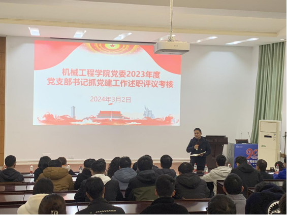 院党委书记卢婵江进行总结讲话。她指出,过去一年,学院党委以高质量党建引领学院高质量发展为指导思想,以创建党建标杆院系为目标,以主题教育实践为抓手,带领全院各支部学习贯彻习近平新时代中国特色社会主义思想和党的二十大精神,认真落实上级党组织决策部署,扎实推进学习贯彻习近平新时代中国特色社会主义思想主题教育,认真组织“三会一课”、“五基三化”系列工作,在各支部的团结协作下,学院的基层党建有了较大改善,全院师生的工作面貌焕然一新,以党建促改革发展取得明显的成效。但在看到成绩的同时,我们也要有清醒的认识,部分支部在基层党建创新、支部建设活力提升、党建业务深度融合等多方面参差不齐,还有不同程度的改进空间,希望各支部一要压实理论武装,进一步增强抓党建工作的能力和本领。要持续跟进学习习近平总书记系列重要讲话精神,提高学习的质量和效果,不断提高抓党建工作本领和水平,努力把党支部建设成为贯彻党的决定、团结凝聚党员、推动学院高质量发展的坚强战斗堡垒。二要创新工作思路,持续发挥党建引领作用。要勤于思考,敢于创新,各支部要积极创新支部主题党日活动形式,实现党建业务双融合促提升;要持续加强党建宣传教育,把稳守牢意识形态阵地,弘扬主旋律、传播正能量,持续发挥党建引领作用。三要压实工作责任,创建具有机械特色的党建品牌。要进一步结合教书育人、学科科研特色,加快“一支部一品牌”建设,以党建工作统领全局,积极开阔思维和资源,强化党员使命担当,争取今年在党建“创先争优”“双带头人”及人才队伍建设等方面取得新的突破,为学院高质量发展贡献力量!