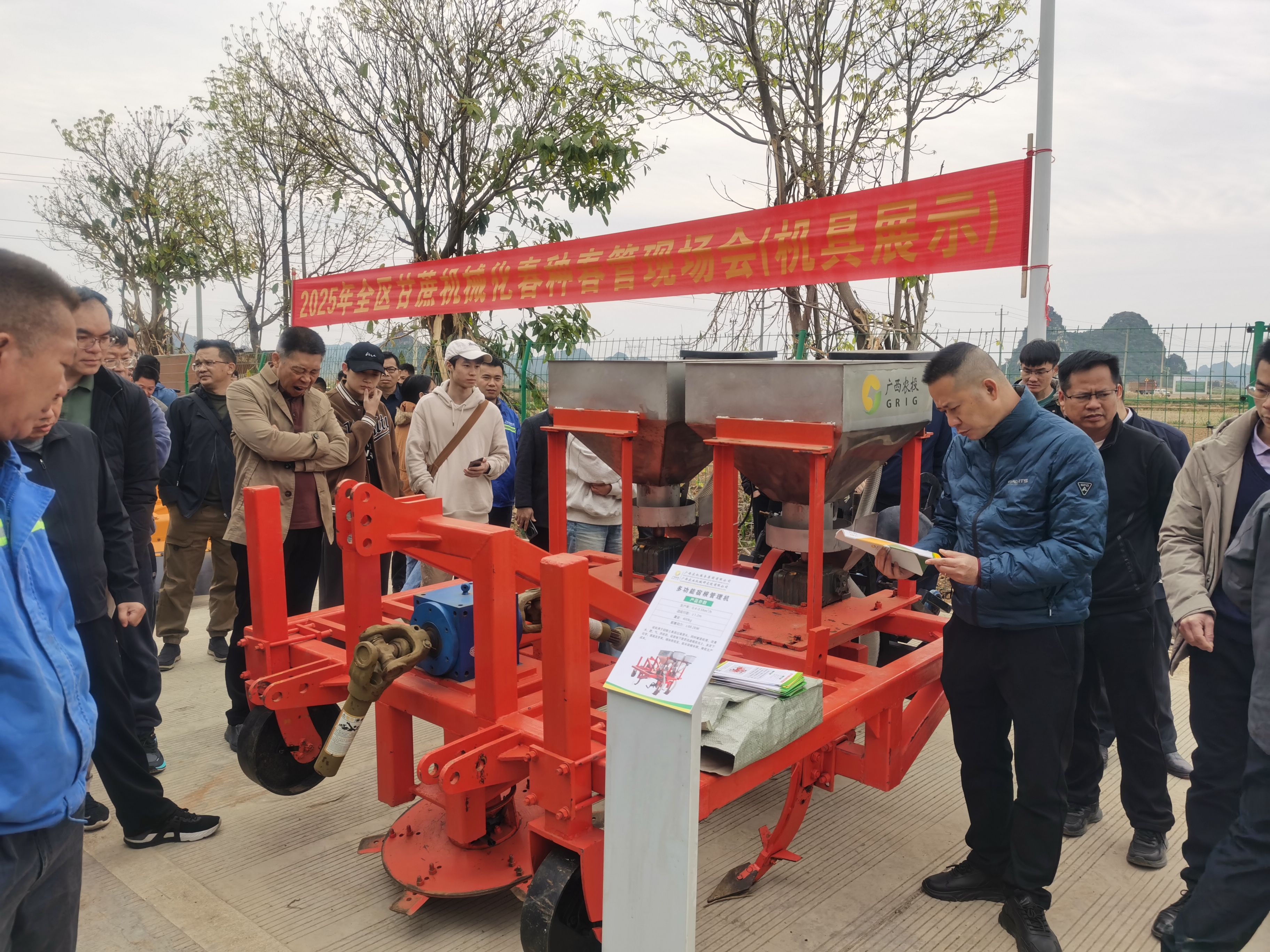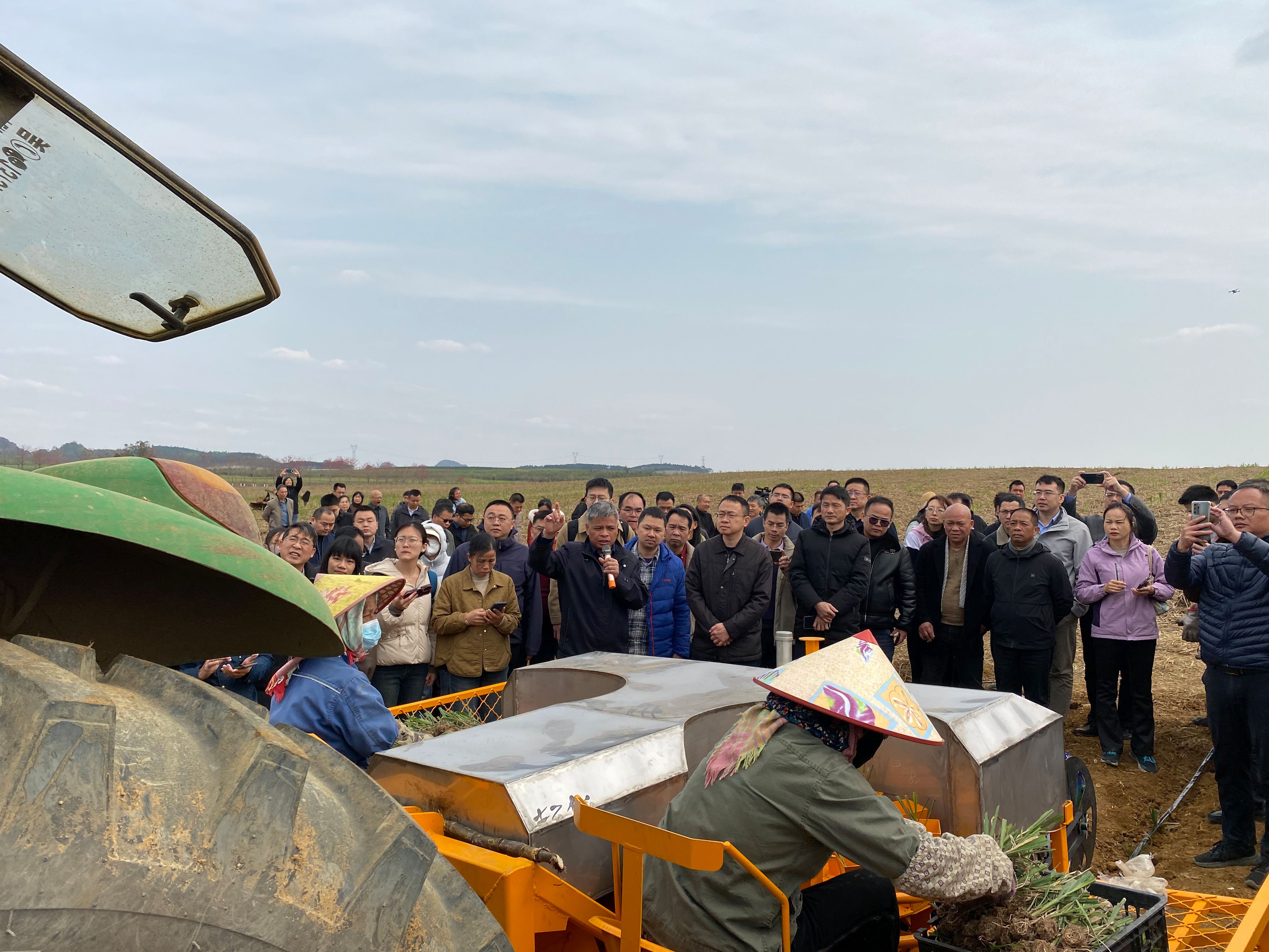 2025年3月18日,由广西农业农村厅主办,扶绥县人民政府承办的“2025年广西甘蔗机械化春种春管现场会”在古天乐代言太阳集团网址位于农科新城的“广西农业机械化产学研推示范基地”召开。此次现场会以“甘蔗春种春管智慧农机+”为主题,集中展示了智能化、无人化农机设备在甘蔗春种春管中的创新应用,为推动甘蔗产业现代化发展注入强劲科技动能。学院党委书记、现代产业学院常务副院长卢婵江、现代产业学院办公室主任杨望等20名师生代表到现场观摩。